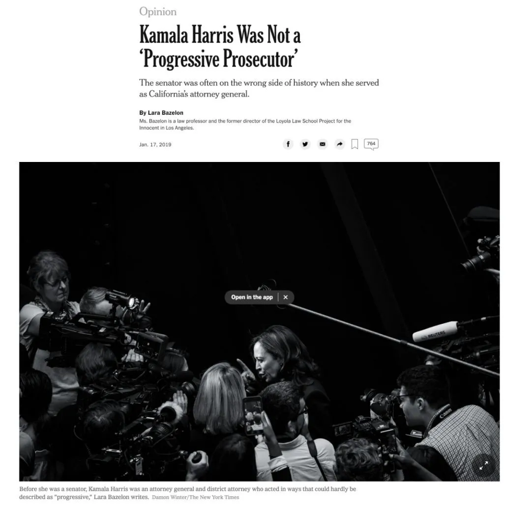 法学教授Lara Bazelon在《纽约时报》上发文批评贺锦丽。
