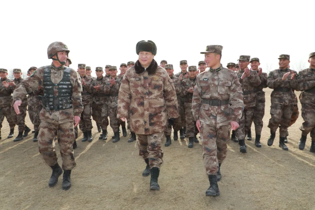 2018年1月3日,中共中央总书记、国家主席、中央军委主席习近平视察中部战区陆军某师。这是习近平同该师侦察英雄杨子荣生前所在连官兵亲切交谈。新华社记者 李刚 摄
