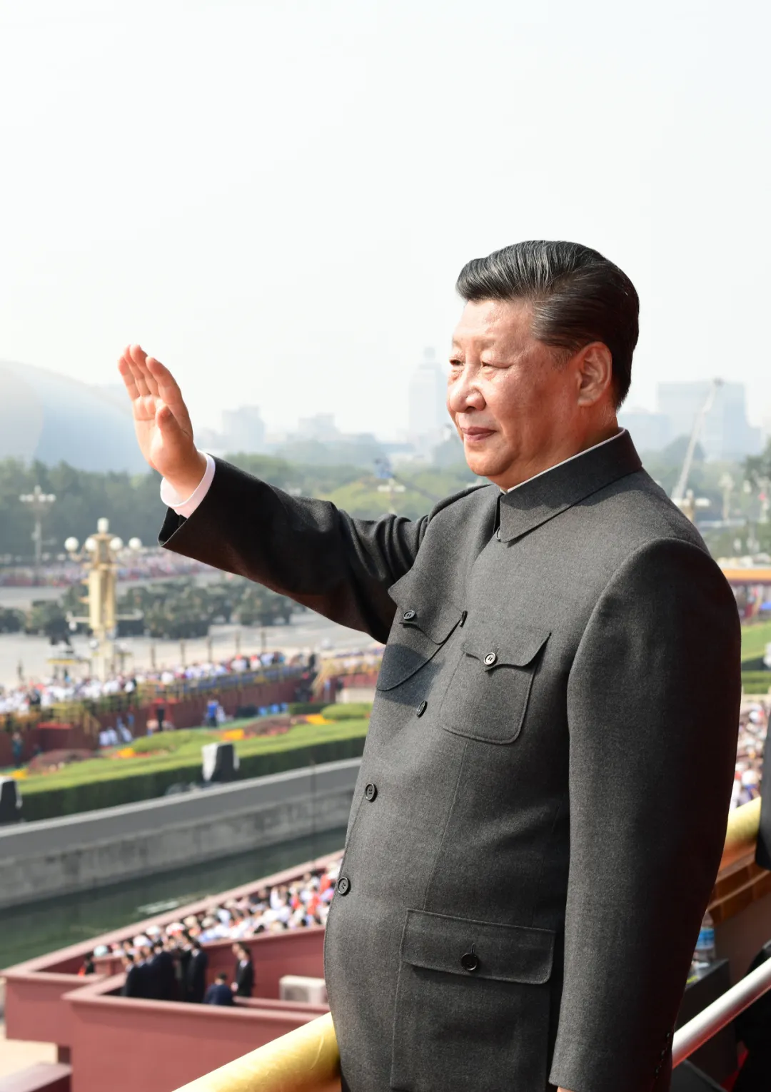 2019年10月1日,庆祝中华人民共和国成立70周年大会在北京天安门广场隆重举行。这是中共中央总书记、国家主席、中央军委主席习近平检阅受阅部队。新华社记者 燕雁 摄