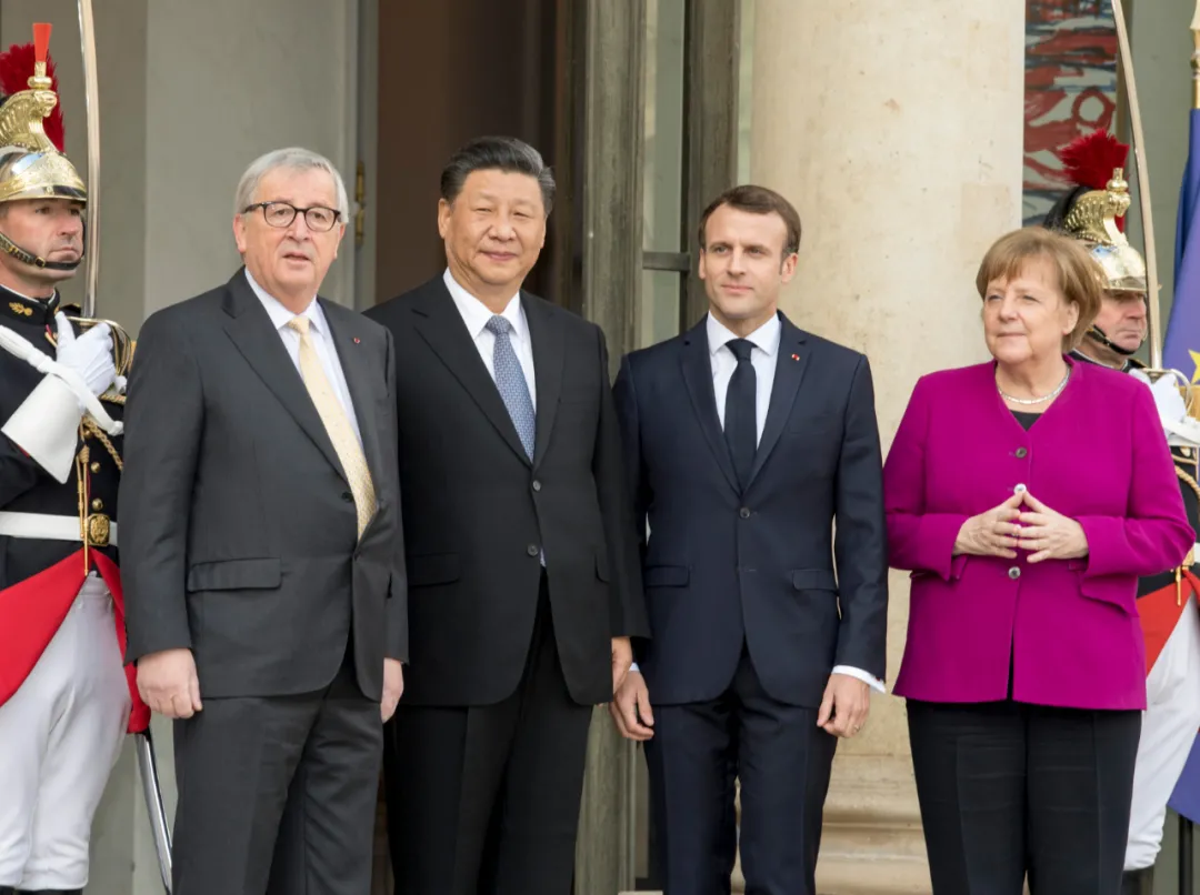 2019年3月26日,国家主席习近平在法国巴黎同出席中法全球治理论坛闭幕式的法国总统马克龙、德国总理默克尔和欧盟委员会主席容克举行会晤。新华社记者 高洁 摄