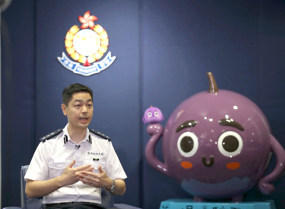 香港警务处警察公共关系科郭嘉铨总警司在接受新华社记者专访(7月22日摄)。新华社记者 吴晓初 摄