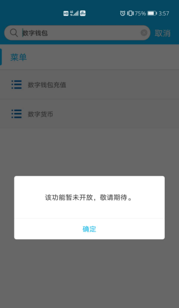 今天,天目新闻记者登录中国建设银行官方App发现,建设银行数字货币个人钱包已经上线,通过功能搜索可以进入“数字钱包充值”以及“数字货币”两个子菜单。但目前该功能或仅在部分测试地区开通。记者在杭州测试了这个功能,页面显示“该功能暂未开放,敬请期待”。截至今天傍晚,成都、深圳、苏州等多地网友测试爆料,目前页面已经显示“该功能暂未正式对外提供服务,敬请期待”。