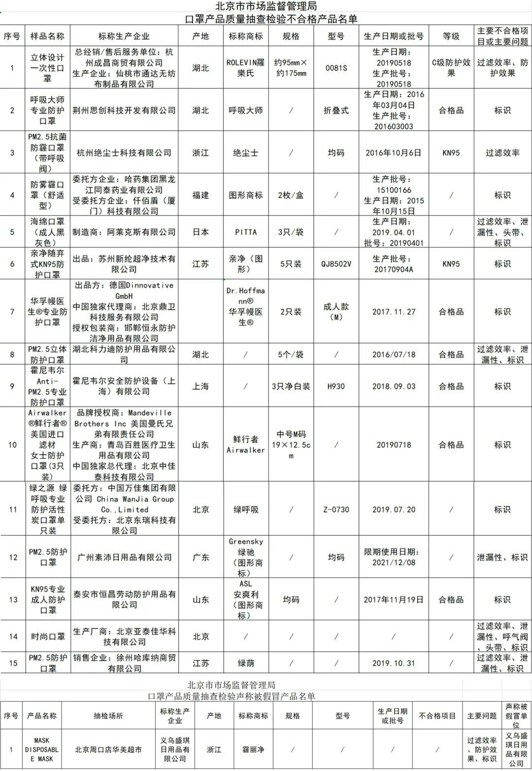 另外,两家产地为北京的口罩产品也被查出质量问题。