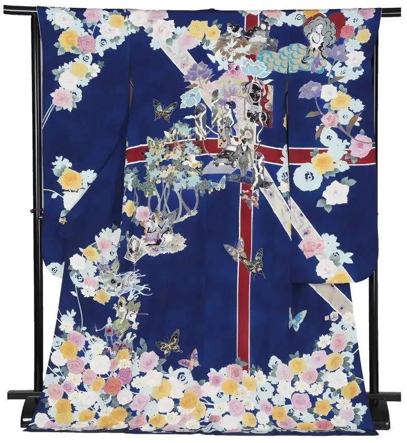 英国和服设计主题为“英国式自然风景园”和“米字旗”布满了各色玫瑰和藤蔓