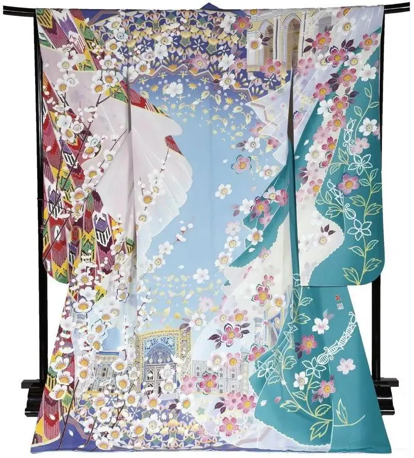 传统和服起源于日本平安时代拥有迷人的纹饰和与之相配的华丽腰带 是日本最值得向世界夸耀的文化遗产之一