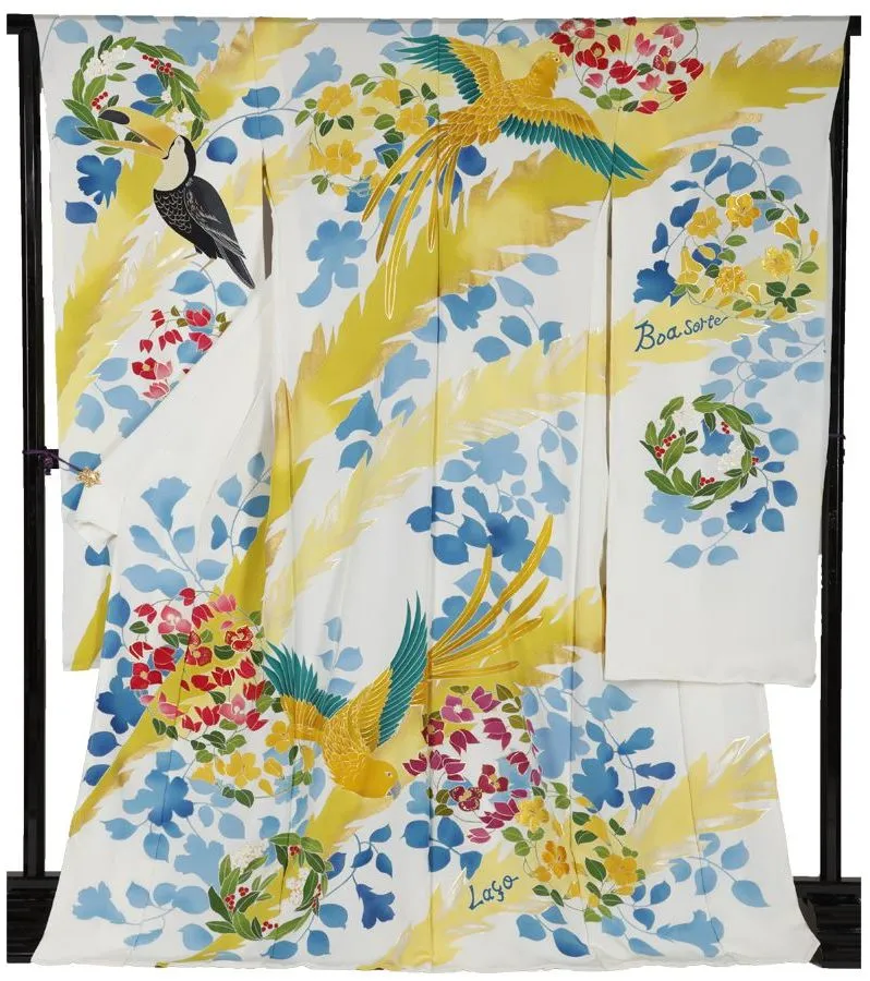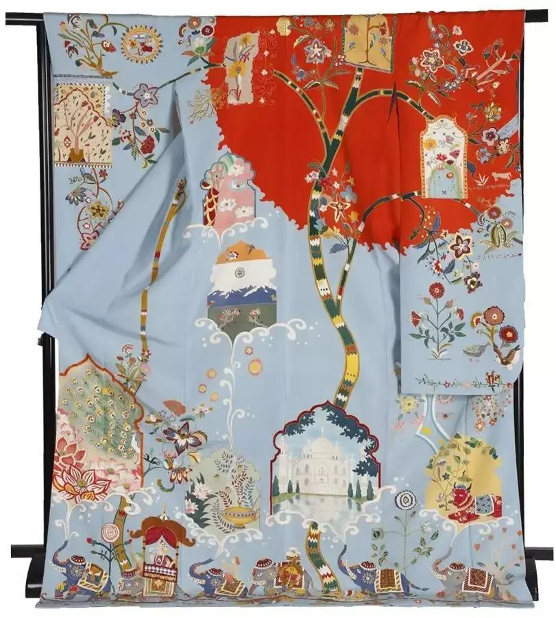 中国台湾的和服设计主图案为蓝鹊与梅花