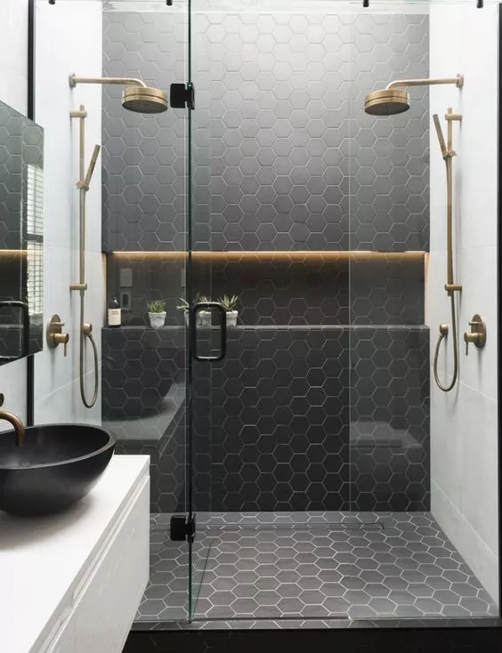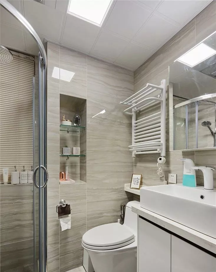 壁龛在卫浴间运用尤其多,洗浴用品有了容身之处,又省去了收纳用具。设计时造型上还可以与墙面融合在一起,作为收纳架or收纳板,铁的怕生锈,木的怕掉色,只有壁龛才能拯救潮湿的卫生间。