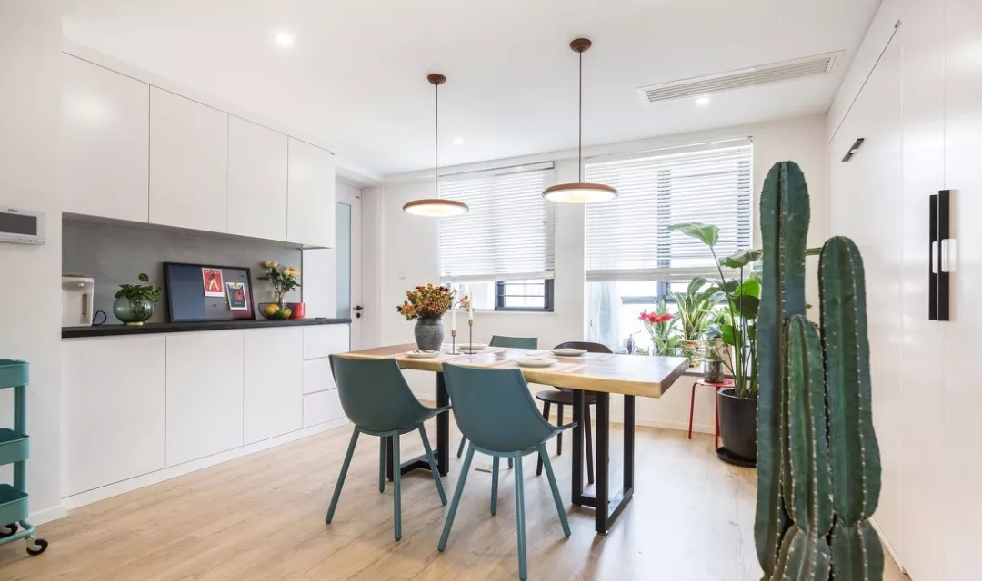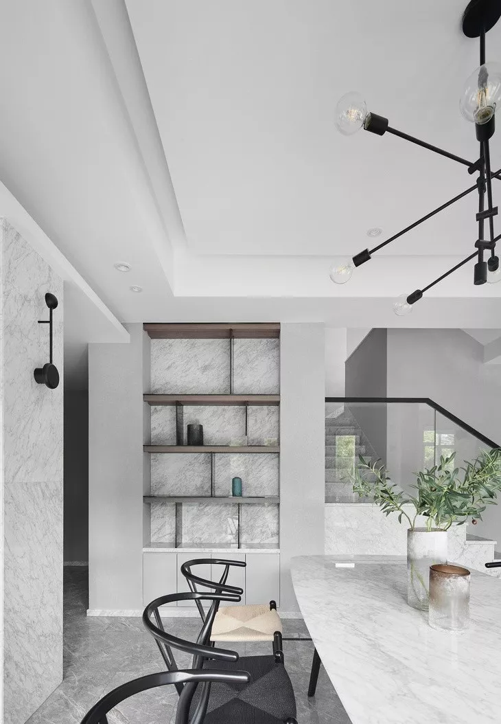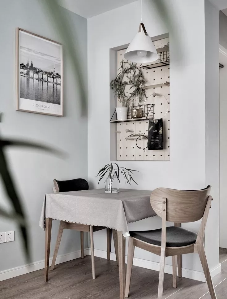 在餐厅附近也可以做一个壁龛,充当餐边柜,不管是餐具还是摆件都可以放进去,节省空间还有装饰作用,调调一下就上来了。
