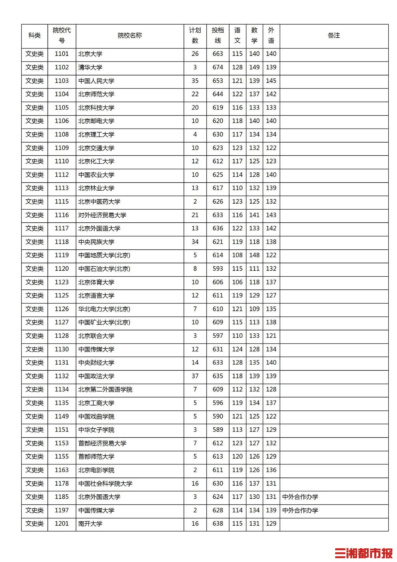 三湘都市报·新湖南客户端8月21日讯(记者 黄京 通讯员 蒋诗雨)刚刚,备受众多考生关注的本科一批平行一志愿投档分数线出炉。三湘都市报记者梳理发现,清华大学以674分位居文科投档线榜首,北京大学则以688分位居理科投档线榜首。省内高校中,湖南大学以628分排在文科首位,国防科技大学以642分理科排首位。