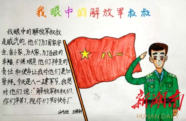 科教新报·新湖南客户端讯(通讯员 李一鸿 何雅文)为庆祝中国人民解放军建军93周年,增强学生对人民军队的崇敬与热爱之情,提升民族自豪感,进行爱国主义教育,日前,长沙市雨花区育新小学开展了形式多样、内容丰富的庆“八一”实践活动。