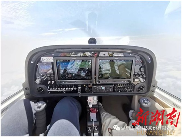 ▲我国首款具备自动驾驶及夜航功能的轻型运动飞机——山河智能旗下产品山河阿若拉SA60L-iS两座轻型运动飞机在自动飞行中。该型飞机上加装了一个电子“大脑”,这个电子“大脑”可以感应飞机自身的位置和姿态,并自动对飞机的飞行姿态进行控制,使飞机精准地按照预设航线飞行,从而实现自动驾驶。(山河智能供图)