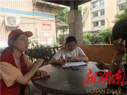 新湖南客户端8月14日讯(通讯员 刘博 丁子希)“您好!我是社区人口普查志愿者,来自华中农业大学暑假社会实践的学生丁子希。打扰您一会儿,我们根据人口普查户口整顿的相关要求,核实您以及家人的相关信息,请您配合”。随着阵阵敲门声,伴来的是志愿者热情的话语,第七次全国人口普查工作在长沙市芙蓉区火星街道陶家山社区开展得如火如荼。