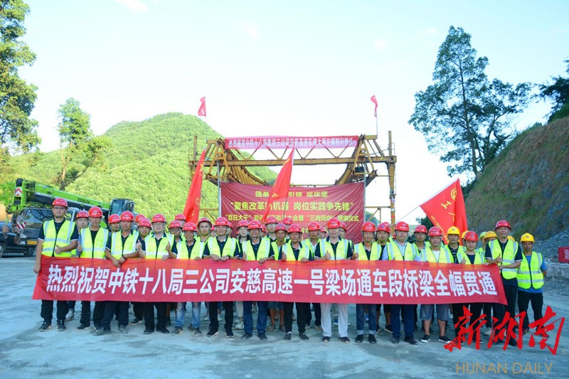 (8月14日,安慈高速项目一号梁场通车段所有桥梁全幅贯通。)