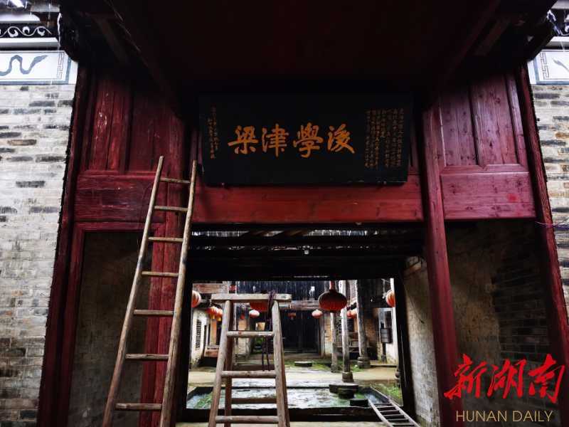 几根长木梯架上跳板就是脚手架,一根大楠竹上端固定一个动滑轮就是土吊车。凭着执着、热情和智慧,几位土生土长的平江农民先后换下50多根朽坏的柱梁,修复30处窗棂。主要厅堂均用石灰和黄土夯实地面,原保存在各家各户的12块牌匾经维修也悬挂了出来。