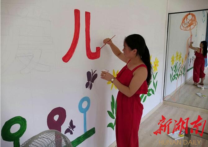 为了节省开支,墙画创作、清洁卫生都是李勤带领本校老师自己动手。魏荣开玩笑说:“我们都被李校长‘改造’为男劳力了。”