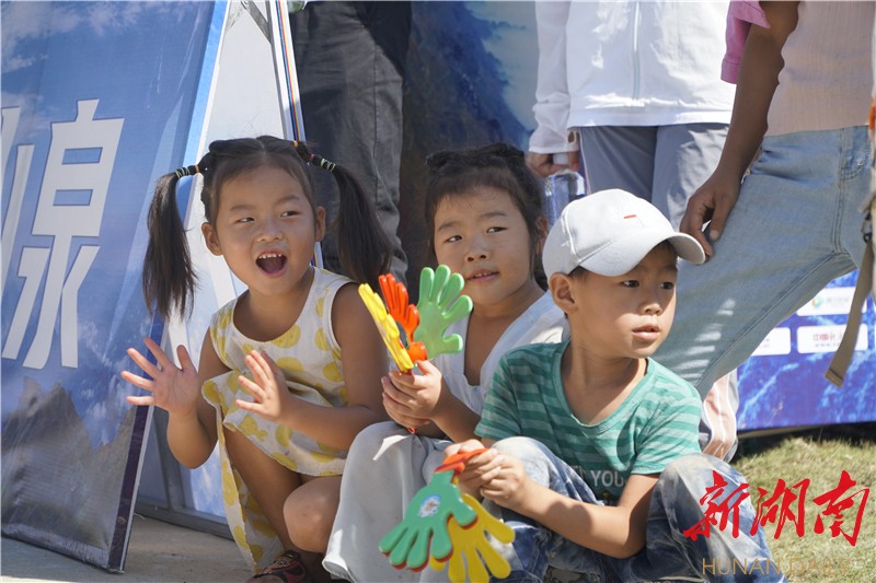来自里耶 8岁的小男孩李安霁拿着妈妈田丽琼的手机,不停拍照,他6岁妹妹李韵涵和5岁李芮涵,则鼓着掌,使劲给运动员加油。