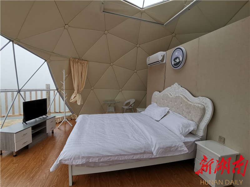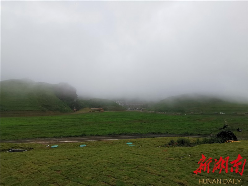 顺着挖掘机的隆隆声望去,云雾中,14个刚搭好的大型帐篷依次排布,好似一朵朵白云。沿着木板铺设好的栈道,记者步入一顶圆形帐篷内,碰巧遇到正在查看工程进度的龙山县委常委、常务副县长蔡龙。