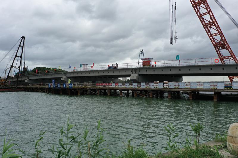 8月4日,记者实地探访获悉,连接起上海青浦与苏州吴江两地,全长180米的元荡桥已顺利合龙,为该桥及两侧沪苏两地公路延伸段在今年国庆前全面通车提供了保障。