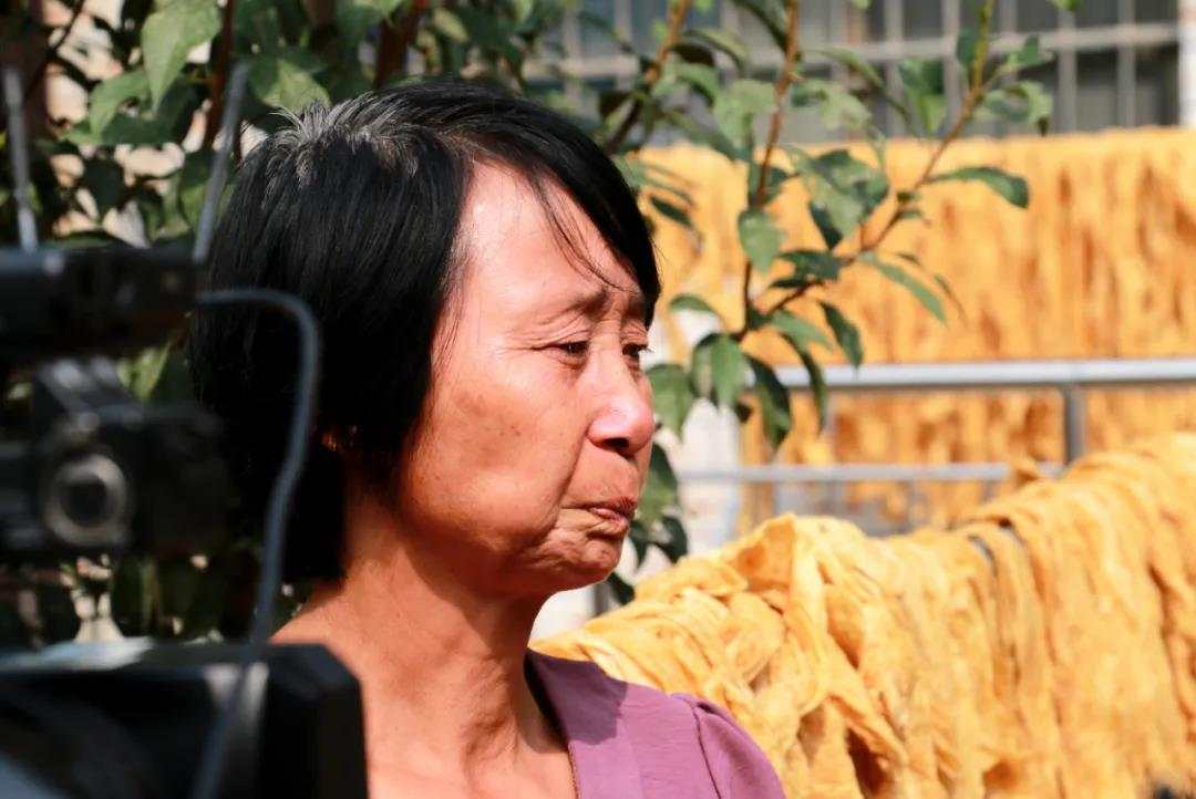 孙亚辉的母亲接受采访时落泪。 吕达 摄
