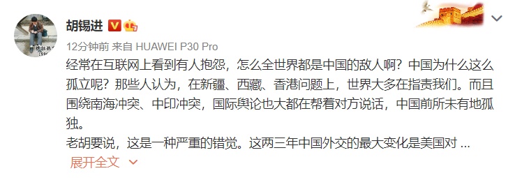 经常在互联网上看到有人抱怨,怎么全世界都是中国的敌人啊?中国为什么这么孤立呢?那些人认为,在新疆、西藏、香港问题上,世界大多在指责我们。而且围绕南海冲突、中印冲突,国际舆论也大都在帮着对方说话,中国前所未有地孤独。