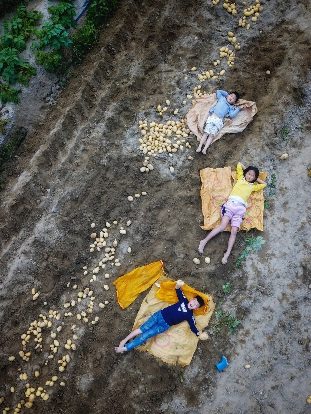 ▲ 广州市增城小楼镇小孩在开心地收土豆。摄影/卢文