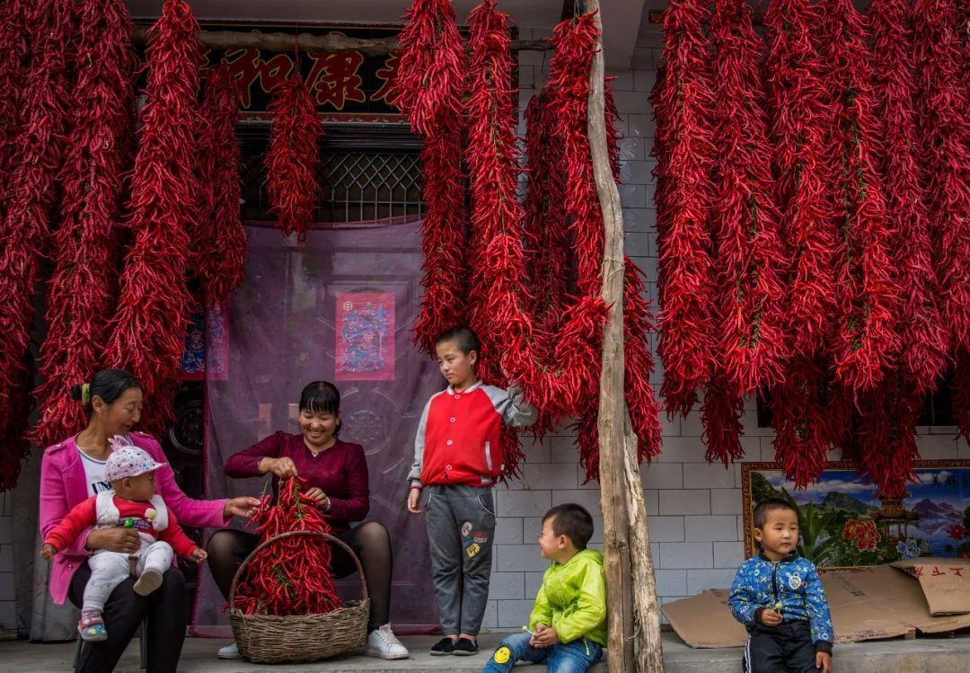 ▲ 贵州毕节市金鸡村村民在整理晾晒的辣椒。图/视觉中国