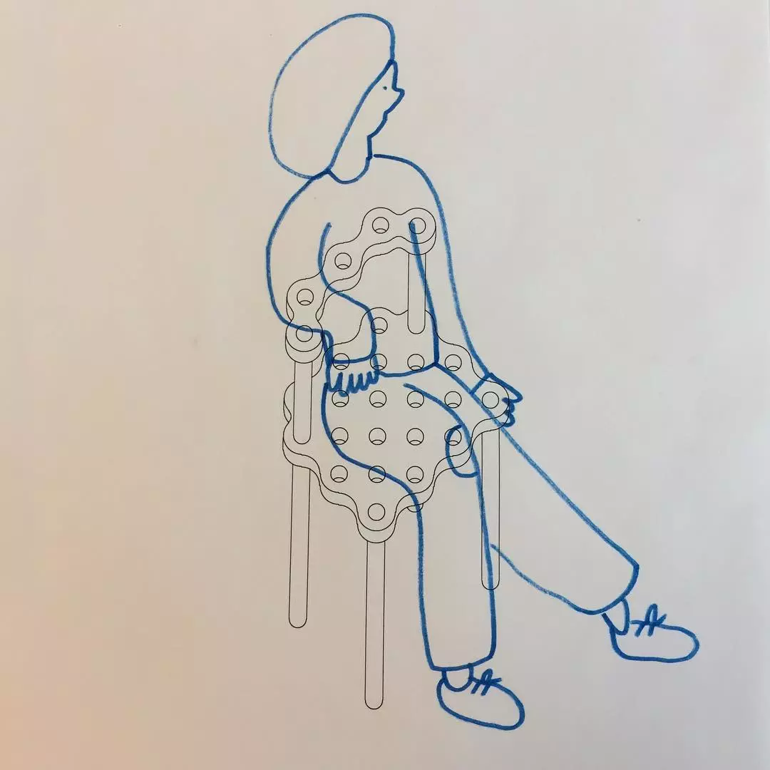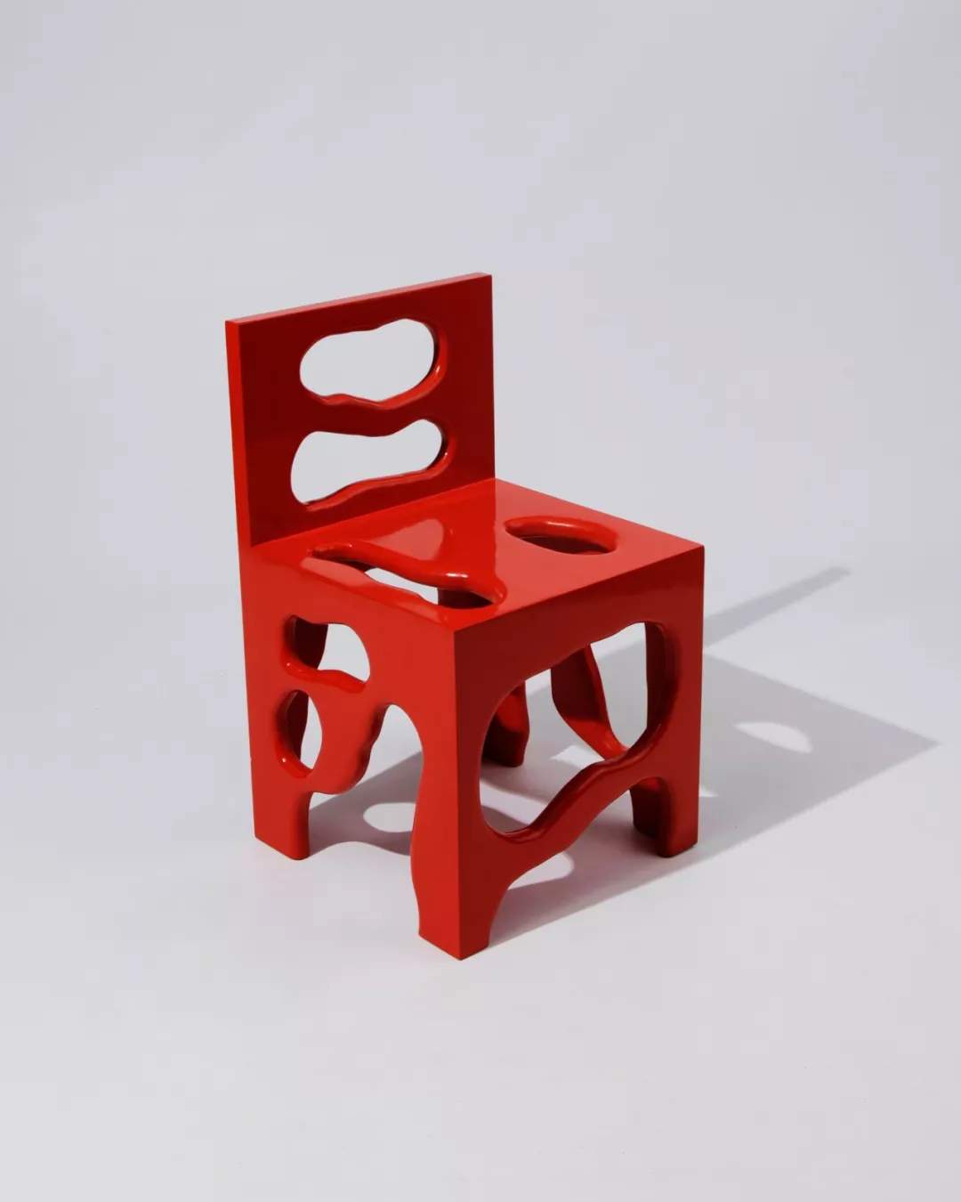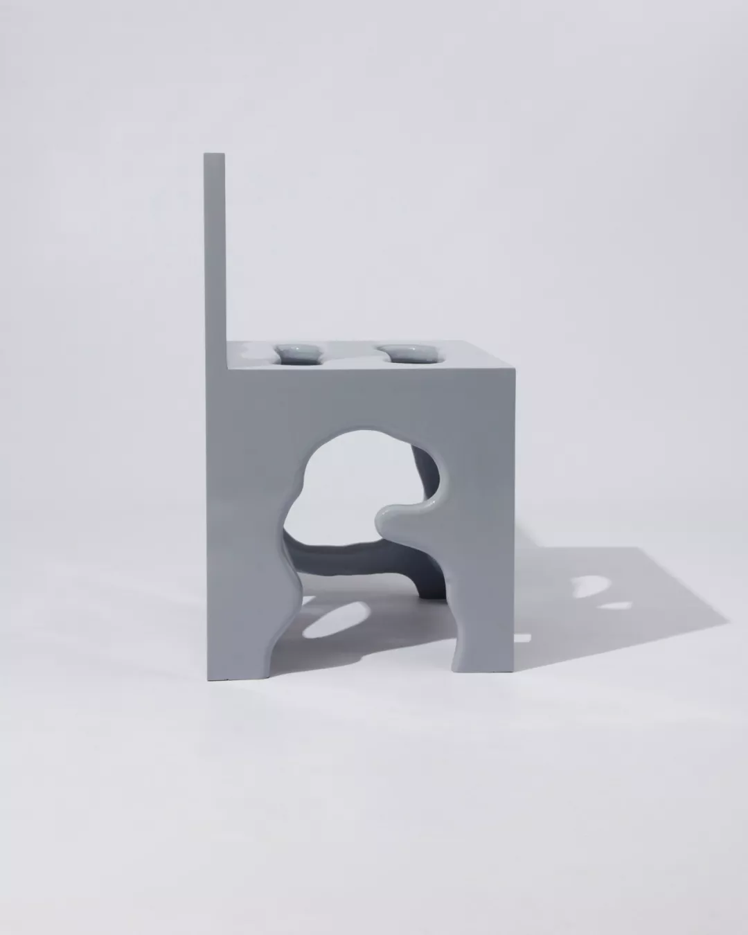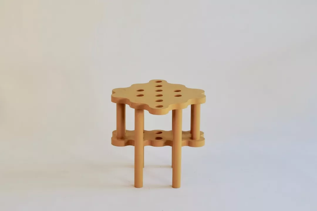这系列的作品由层压的松木切割制成,每一件产品都是绝无仅有、独一无二的,毕竟每一把椅子的洞可能都不一样。