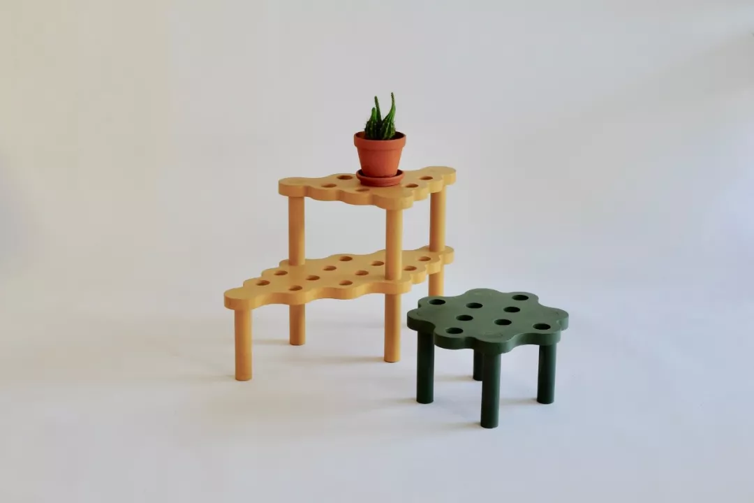 这系列的产品被命名为“Hard Clouds”,意思是坚硬的云朵,属于多功能的家具,可以当茶几、置物架或椅子小凳,俯视看是云朵的形状。颜色都是活泼跳跃的色系,墨绿色、明黄、雾霭蓝,非常养眼。