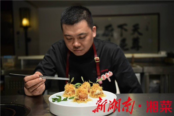 贺俊贤将重心倾注在研发湘菜,用分子料理的形式呈现湘菜,把湘菜的出品做精。他觉得,分子料理是一个加分项,用现代化的烹饪方式,丰富了出品呈现形式,增加了仪式感,让湘菜更有“气质”。