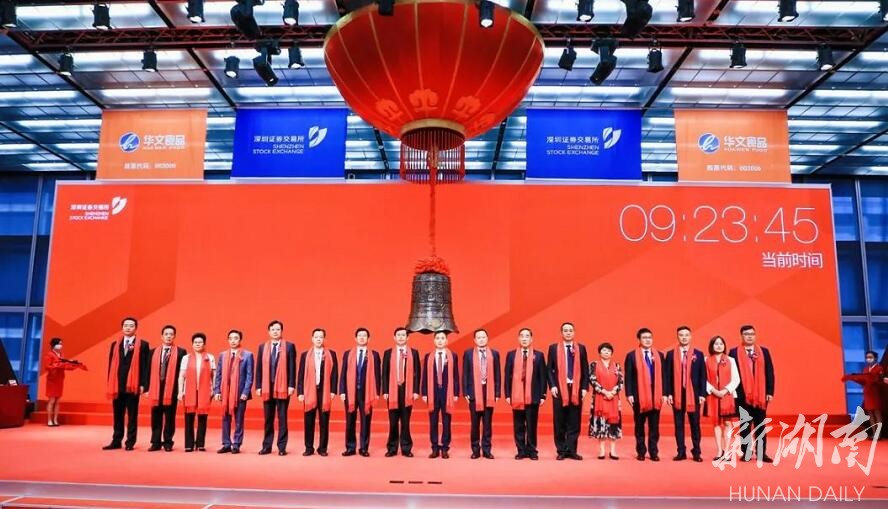 湖南日报·新湖南客户端9月14日讯(记者 徐亚平)今日9时23分,位于平江工业园区的华文食品股份有限公司在深圳证券交易所敲钟上市,正式登陆A股中小板。省委原常委、省军区原政委李有新将军,岳阳市委书记王一鸥,市委常委、常务副市长李挚,市委常委、统战部部长胡建新,市委常委、市委秘书长谈正红,市人大常委会副主任陈光荣,市政协副主席、市发改委主任刘晓英,平江县委书记汪涛,县委副书记、县长黄伟雄,省地方金融监督管理局资本市场处处长易晓佳等领导出席上市仪式。