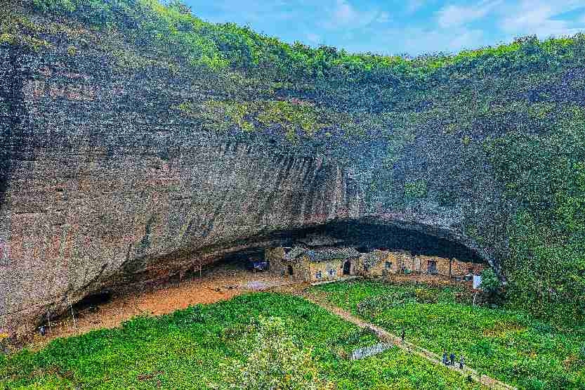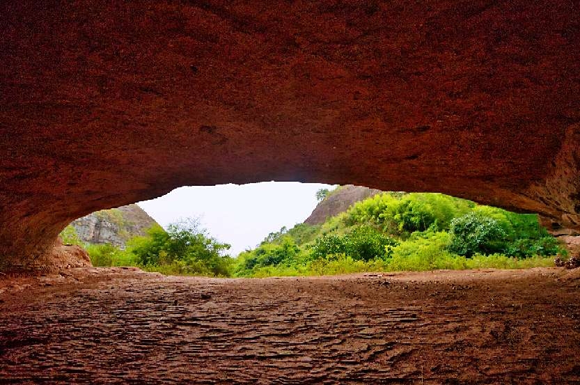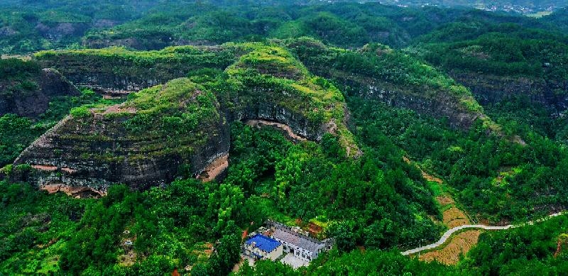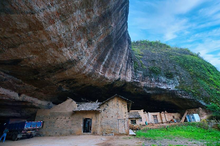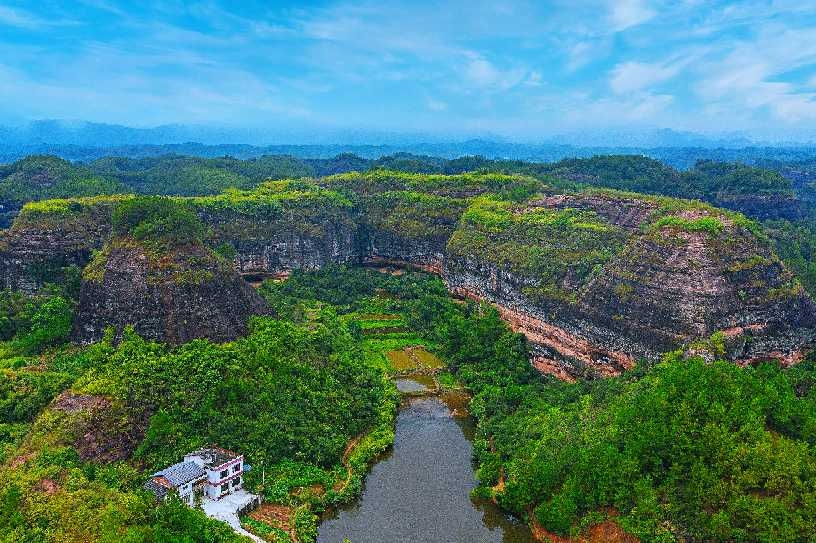 平江县木金乡有一处“穿岩”。“穿岩”是因为亿万年形成的丹霞地貌山岩中有一洞穿山而过,把它分为前岩和后岩两部分。胡望龙 摄