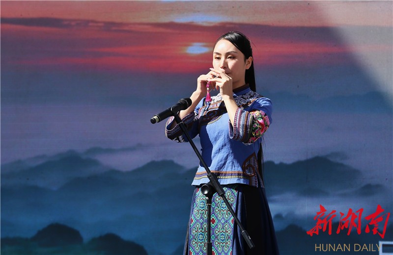 非遗传承人土家姑娘田剑英现场演奏了土家族咚咚喹《山寨的早晨》