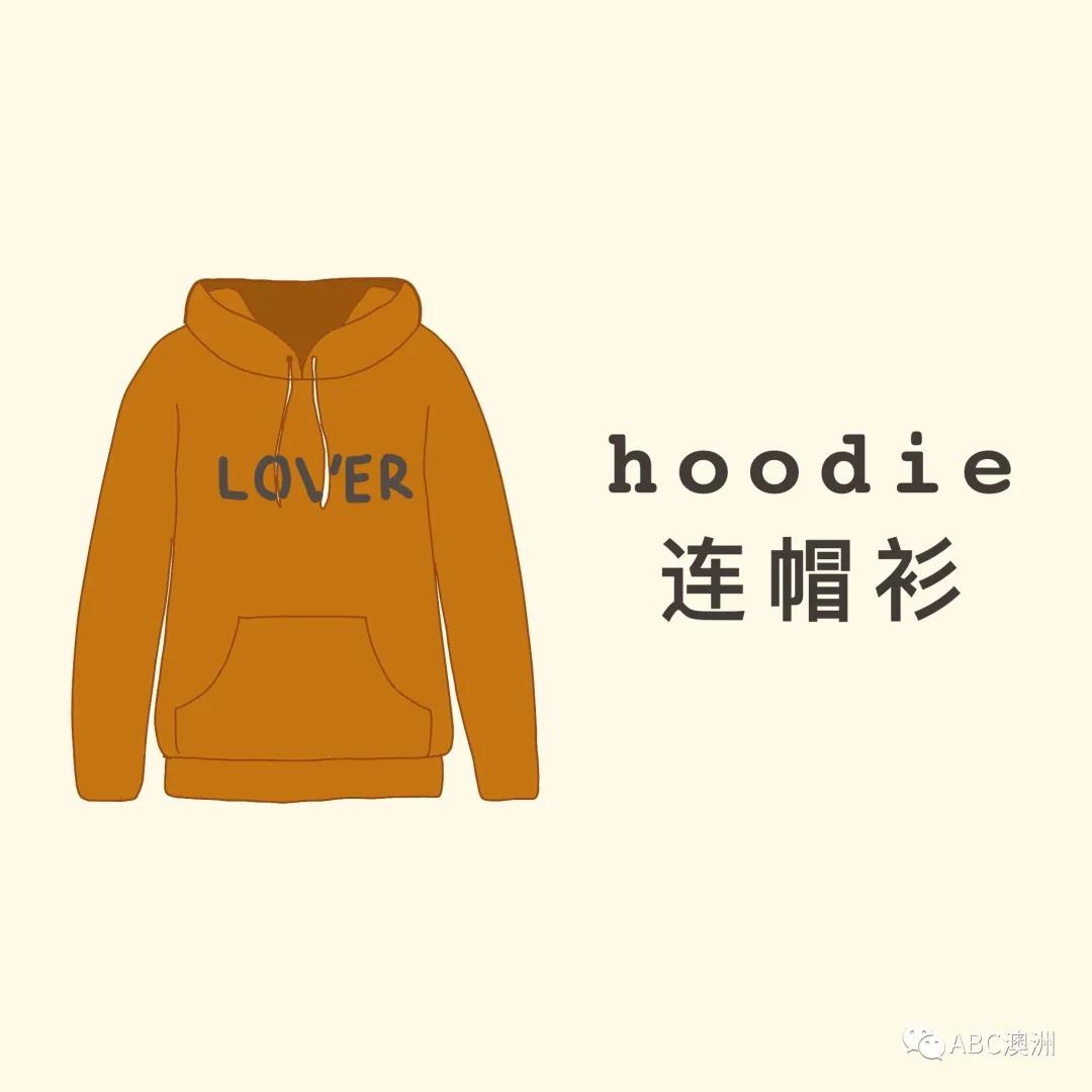 Hoodie是澳洲口语里最常见的词之一,它就是热爱休闲的澳洲人们一年四季都爱穿的——连帽卫衣!因此,Hoodie的关键特征正是它们的帽子部分——hood。