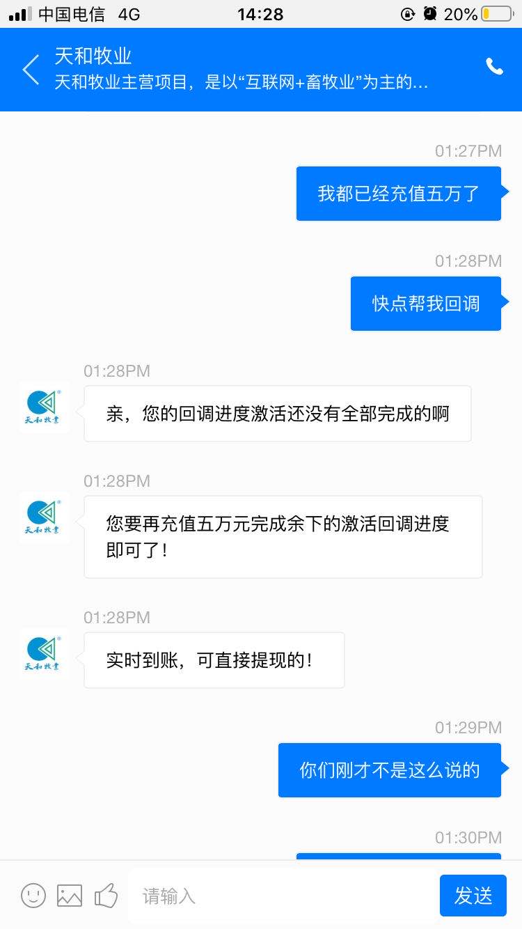△ 小宁在天和牧业APP客服的诱劝下投入15万元