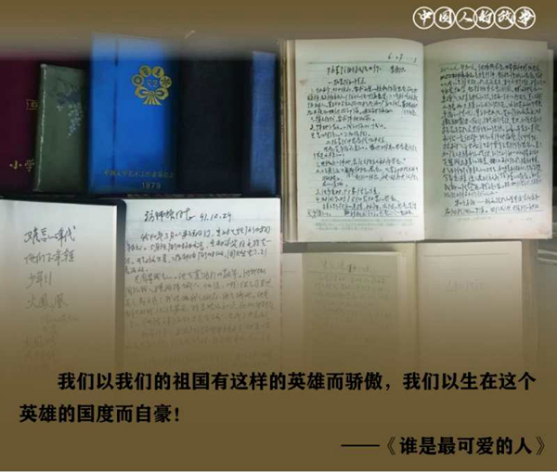 一个年轻的战士名叫王雪庆,家中贫苦,上不起学。参军后,努力学习文化,每天学习三个字,到1950年开始学习写日记。五次战役强渡临津江时,他的日记放在裤子口袋忘了拿出来,被江水浸湿了,部分字迹模糊了。他说:“心痛得我不行,那我也没有舍得扔。”他把这本宝贵的日记送给了魏巍。
