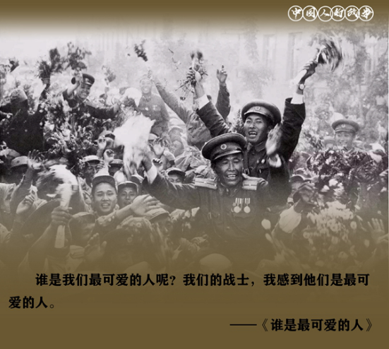 “在朝鲜的每一天,我都被一些东西感动着;我的思想感情的潮水,在放纵奔流着;我想把一切东西都告诉给我祖国的朋友们。但我最急于告诉你们的,是我思想感情的一段重要经历,这就是:我越来越深刻地感觉到谁是我们最可爱的人!谁是我们最可爱的人呢?我们的战士,我感到他们是最可爱的人……”