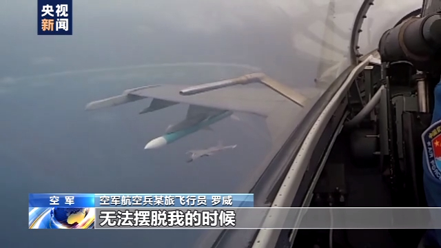 空军航空兵某旅飞行员 罗威:已经看清楚了他的机徽、机号,对方向我们压坡度,压缩间隔,干扰我们对其进行跟踪监视。我立即在他尾后做S转弯,始终在他尾后跟踪监视,当对方发现通过盘旋、压坡度等方式无法摆脱我的时候,他们就选择远离我方的海岸线,飞向公海。