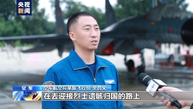 空军航空兵某旅飞行员 余昌义:我们单位是抗美援朝打出来的王牌部队,在去迎接烈士遗骸归国的路上,又去走了一遍这个历程,心里是很沉重的,但是能迎接他们回家,也是很自豪的。