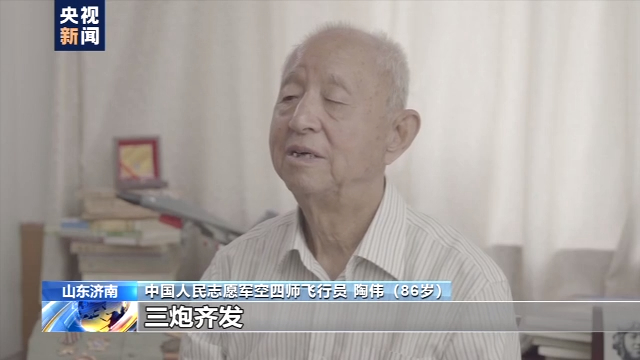 原中国人民志愿军空四师飞行员 陶伟:一看正好我敌机对着正前方符合射击条件,三炮齐发,从200米一直打到120米把美国飞机击落,创造了最短射击的距离。