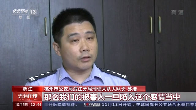 杭州市公安局滨江分局刑侦大队大队长 苏浩:那么我们的被害人在陷入这个感情当中,她认为对方可能是一个真心投入的一个白马王子,但是实际上犯罪嫌疑人背后是一个团队,在围绕你这个被害人做这个研判。