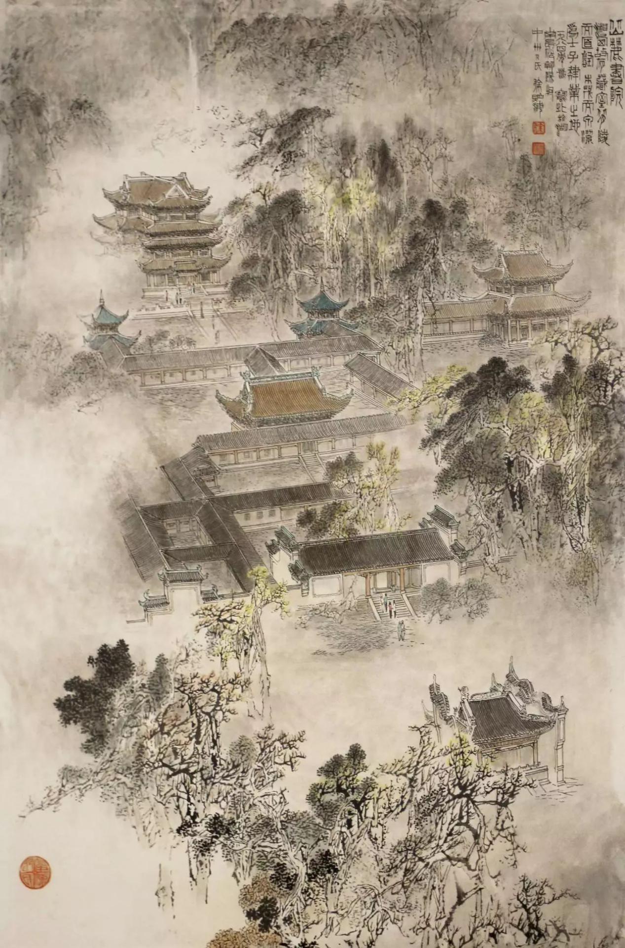“界画”源于晋代,盛行于唐宋年间,近现代擅长界画者甚少,徐照海是现代“界画”集大成者,他在传统“界画”技法的基础上,结合写生和适当结合西洋技法,逐步形成以楼、台、亭、阁为主体的山水画风格。
