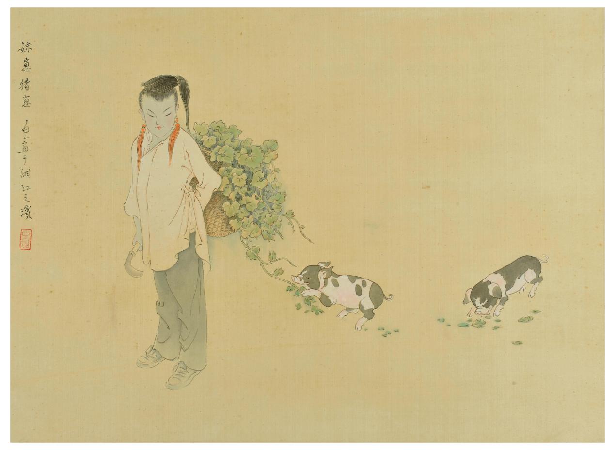 “什么是湘女多情?看看陈白一的画就知道了。”王鲁湘如是说。作为湖南工笔画人物创作的奠基人,陈白一拒绝模仿古人极尽精微、敷色艳丽的工笔花鸟和仕女,而是用工笔的手段反映现代的生活。他画罗盛教、欧阳海、贺龙这些湖南人物,也画马王堆考古新发现这类湖南重大文化事件,但他画得最多也最动情的,是那些无名无姓的湘女湘娃。
