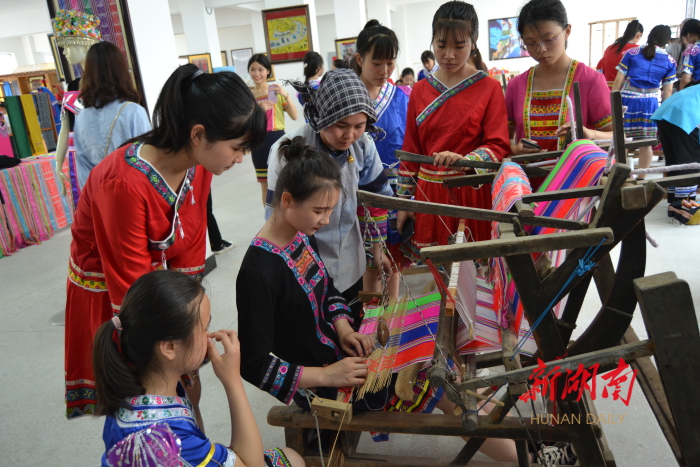 ▲江华瑶族自治县职业中专服装专业学生在上瑶族织锦实训课,该专业通过校企业合作,实现毕业生100%就业。