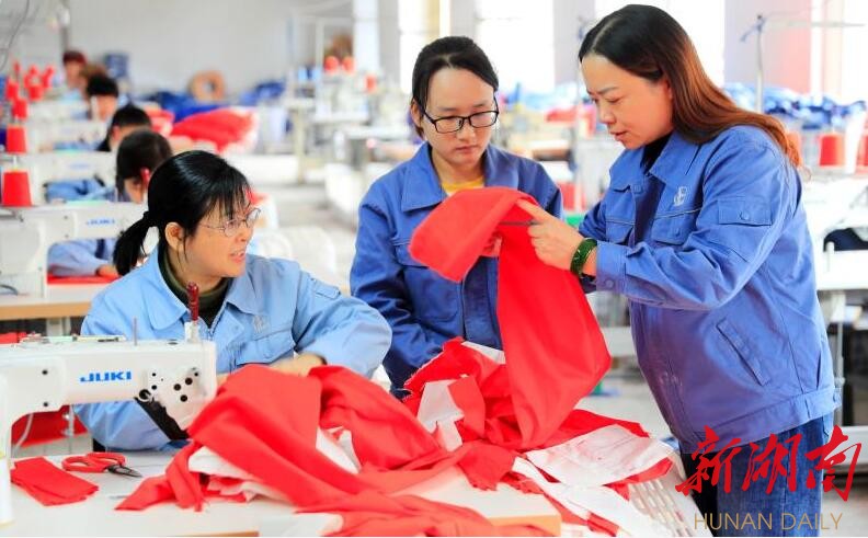 湖南日报·新湖南客户端10月20日讯(通讯员 彭展)10月19日,巴陵石化隆兴实业公司塑料化工厂服装工段,曾被评为巴陵石化劳动模范的该厂厂长、共产党员李艳南,向技术员、共产党员夏建金讲解质量检查要领。