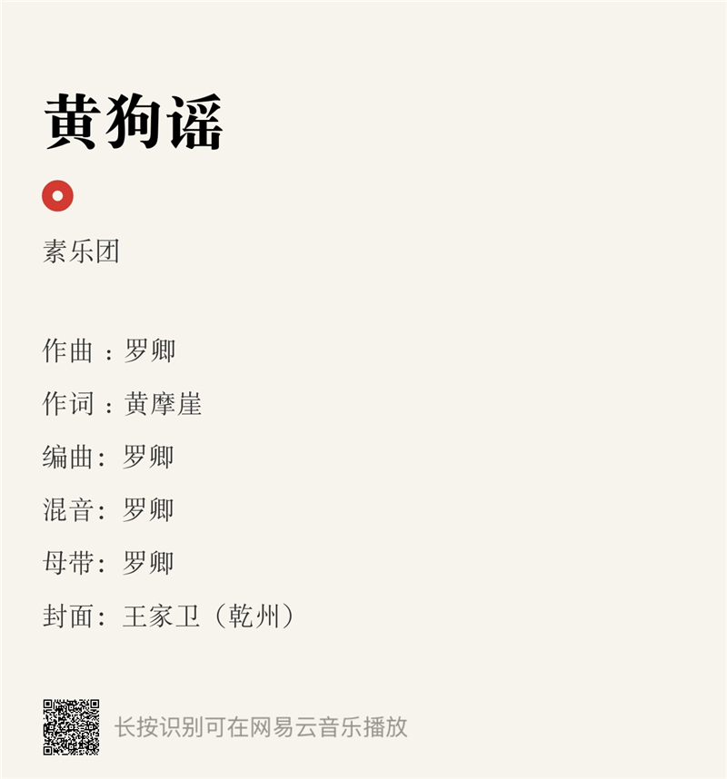 今天,网易云音乐独家推出素乐团2020年新专辑的第七首歌曲《黄狗谣》。自今年4月以来,新专辑中的《峒河峒河》《侠客日记》《四爷》《绿肥红瘦》《无毒丈夫》《学雷锋》已相继上线,余下作品也将在年内发布。