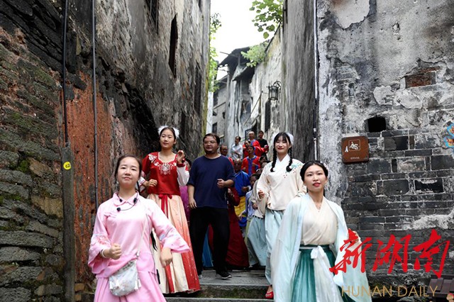 “看这个演出的人太多了,挤不进去里面,看不到近景。”来自长沙的游客李鸿霞有点“抱怨”的讲道,但看起来还是比较开心满意,并表示,洪江古商城比较有人文情怀,在这里感受到了不同的地域风情。