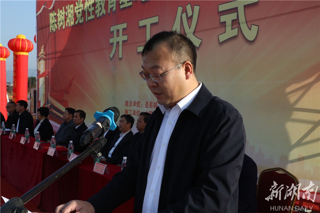 李天明在致辞中表示,实施陈树湘党性教育基地项目建设,是道县深入贯彻落实习近平总书记考察湖南重要讲话精神的生动体现,是弘扬陈树湘烈士断肠明志崇高精神的重要平台,也是长征国家文化公园(道县段)的重点工程,必将成为干部教育培训体系建设的新起点,为全省干部党性教育矩阵增添新动能。