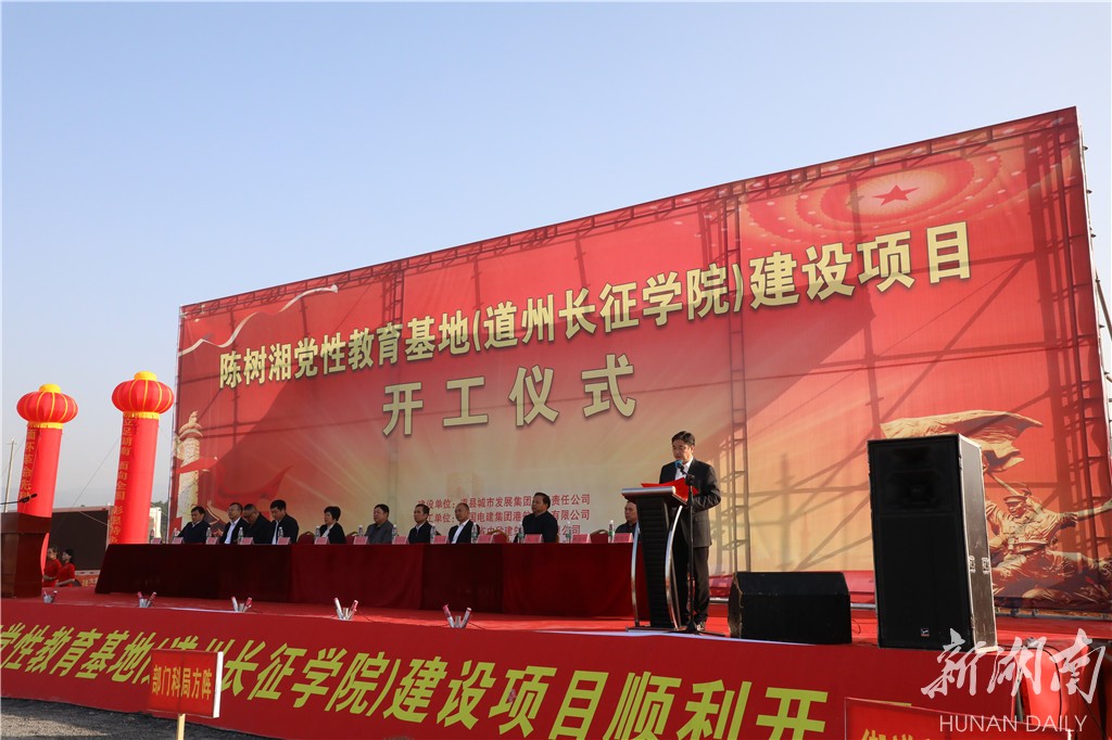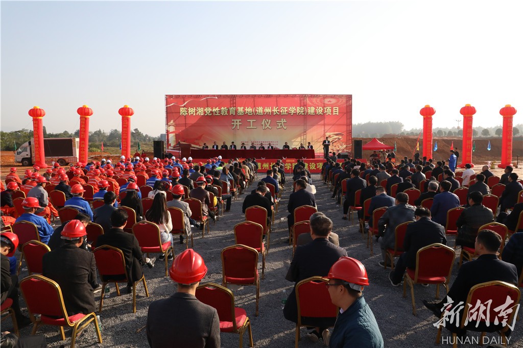 湖南日报·新湖南客户端10月23日讯(通讯员 李文秀 谢万波 蒋克青)秋入濂溪有好诗,项目开工喜相迎。10月23日上午,道县举行陈树湘党性教育基地(道州长征学院)建设项目开工仪式,县委书记吴恢才宣布项目开工,县委副书记、县长李天明致辞,中国电建集团港航建设有限公司党委书记、董事长随守信介绍公司情况并致辞,周良英、乌进甫、义洁、李林、林志刚、张一波、张穆宸、刘军以及全体在家在职县级领导出席开工仪式。县委常委、常务副县长李林主持开工仪式。