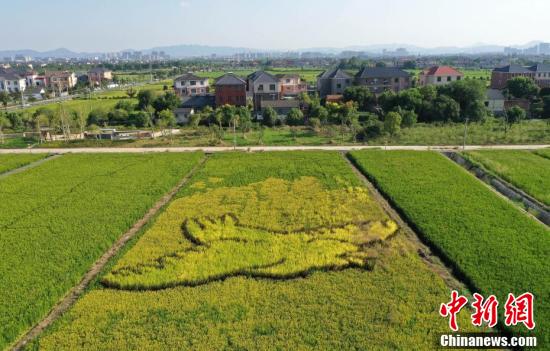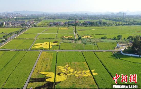 9月30日,航拍五彩稻田内的小鸟形象图案。近日,在浙江杭州的永安稻香小镇内,由浙江大学研发的彩色水稻和优质水稻已开始结穗,并将于国庆假期后收割上市。航拍之下,五彩水稻田风景如画。