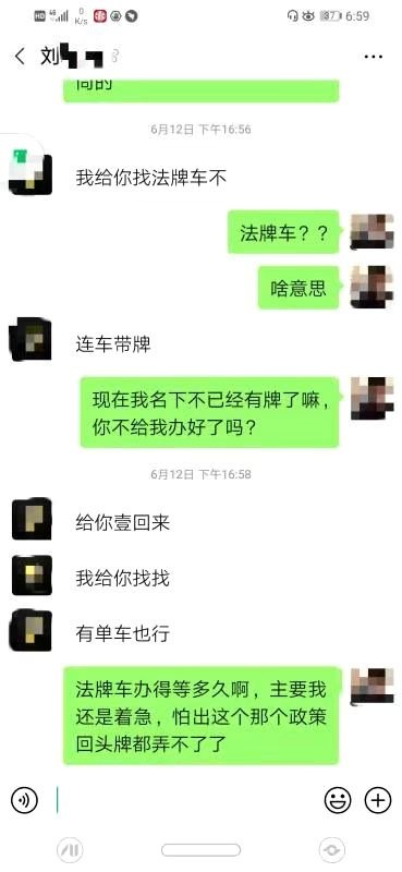 刘某利用三部手机,注册多个小号,一人分饰多角,自编自导,制造虚假聊天和交易记录;同时,他租赁一辆京牌车引起同事们的注意,有意无意间向大家透露自己的办牌门道。通过现身说法,大大提高了可信度和说服力,先后有四名同事因求牌心切陷入骗局。